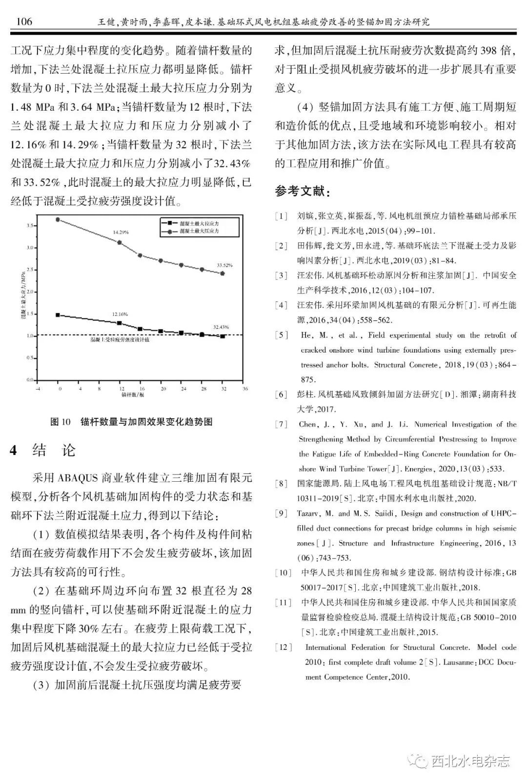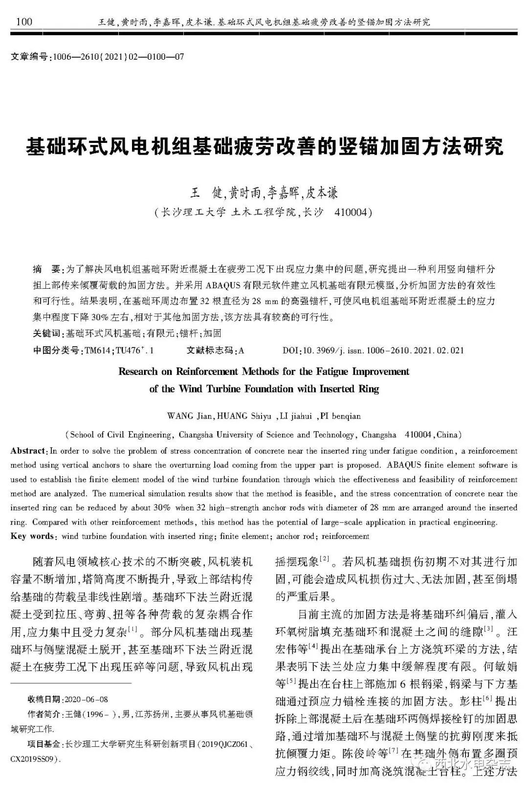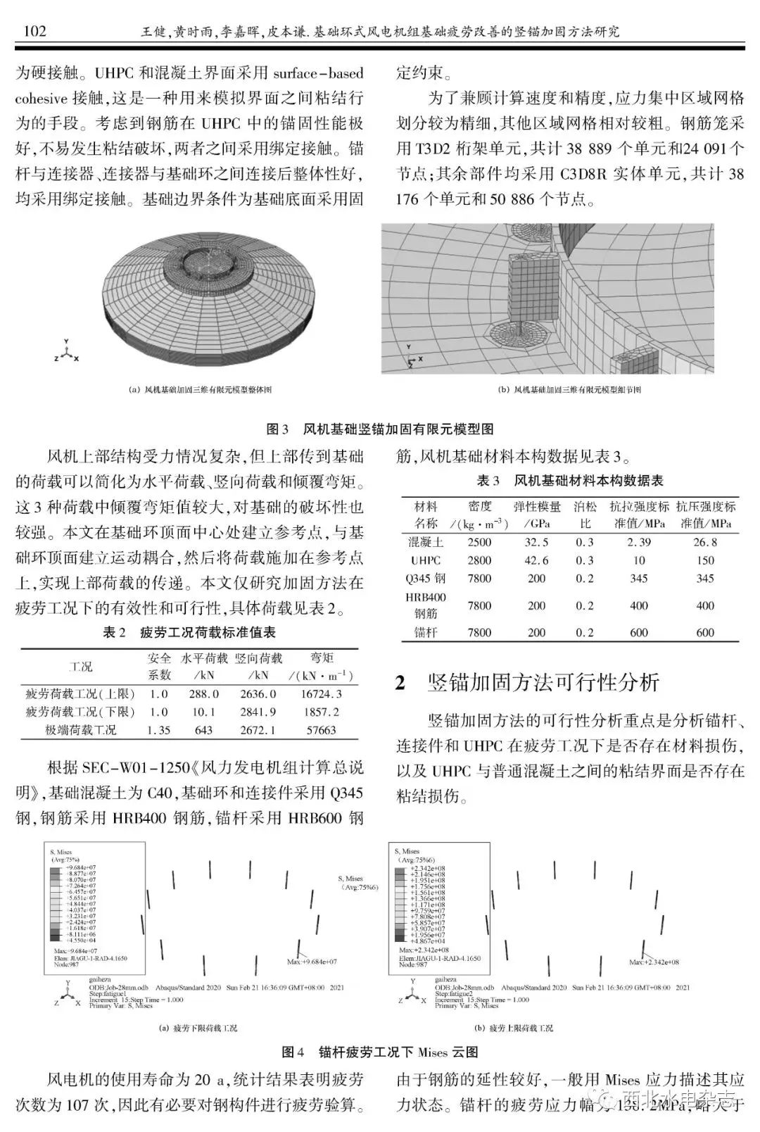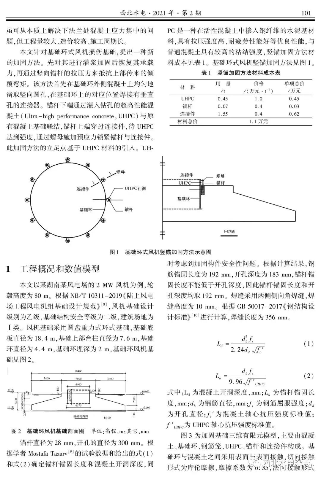 引用格式:王健,黄时雨,李嘉晖,皮本谦.基础环式风电机组基础疲劳改善的竖锚加固方法研究[J].西北水电,2021(02):100-106.