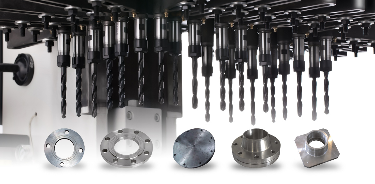 达人多轴钻床为法兰打孔提供更高的加工效率,钻头一次打孔,减少人工并提高加工效率。
